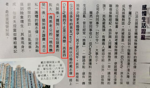 之前戴志伟被拍到和35岁的年轻下属Candy一起外出吃饭并在海边牵手漫步,两人密会引来出轨疑云,之后这位新欢Candy被曝光原来有亲密男友,甚至还曾未婚生子,原本的婚外恋变成了狗血的四角恋引来轩然大波!