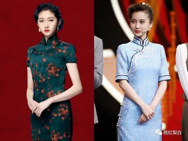 光从外形上来看,AB这次尝试的旗袍风穿搭,还是比关晓彤美上一些的。