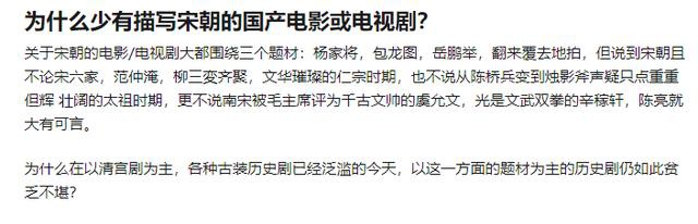 这姗姗来迟的“大男主”之作,不禁让人回想起这两年一直有人好奇的问题:为什么描写宋朝的影视作品那么少?