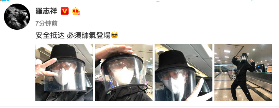 4月15日,罗志祥分享全副武装坐飞机的近照,并配文:“安全抵达,必须帅气登场。