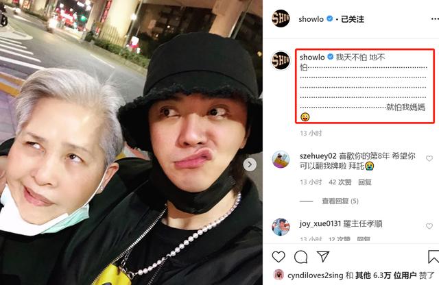 4月15日,罗志祥在社交网站上罕见晒出了和妈妈的合照,并配文表示:“天不怕,地不怕,就怕我妈妈”疑似暗戳戳的回应和周扬青分手以及早前和嫩模开party的事
