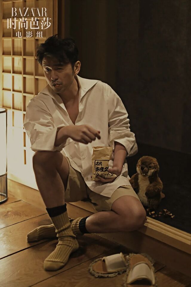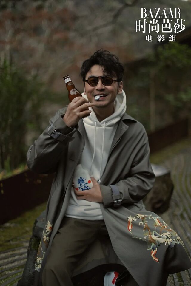 这组写真在日本京都取景拍摄。照片中的雷佳音基本上不是在吃就是在喝。摄影师陈漫一看到雷佳音就猜到他是爱整几口的人,整个拍摄思路也就由此而来。