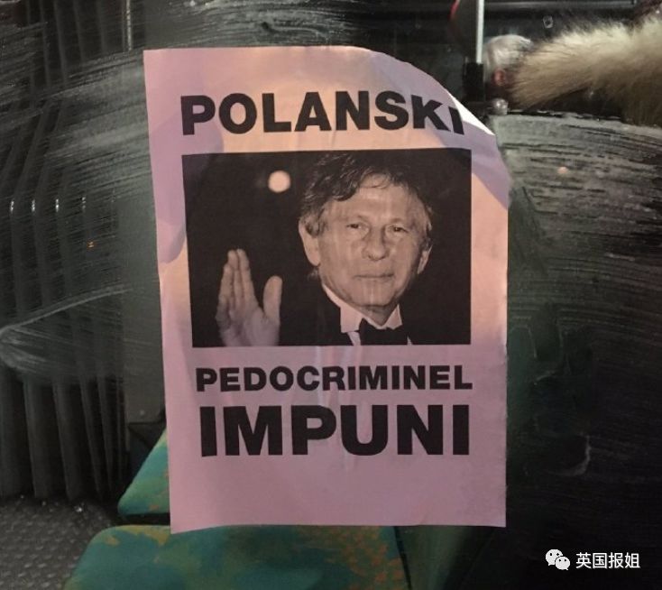 示威者在法国电影学院凯撒学院的会场和总部外面喷了反波兰斯基涂鸦。