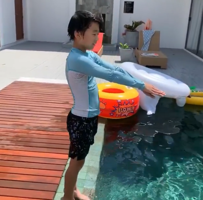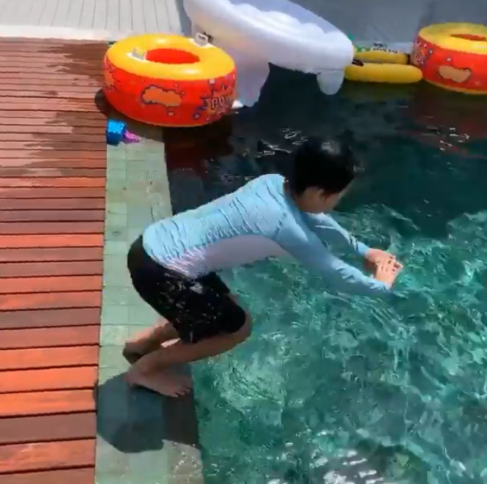 3月1日,张柏芝在个人社交网站分享了指导二儿子小Q跳水的视