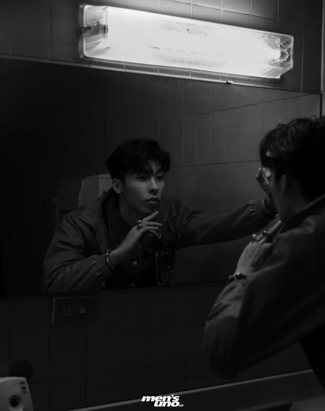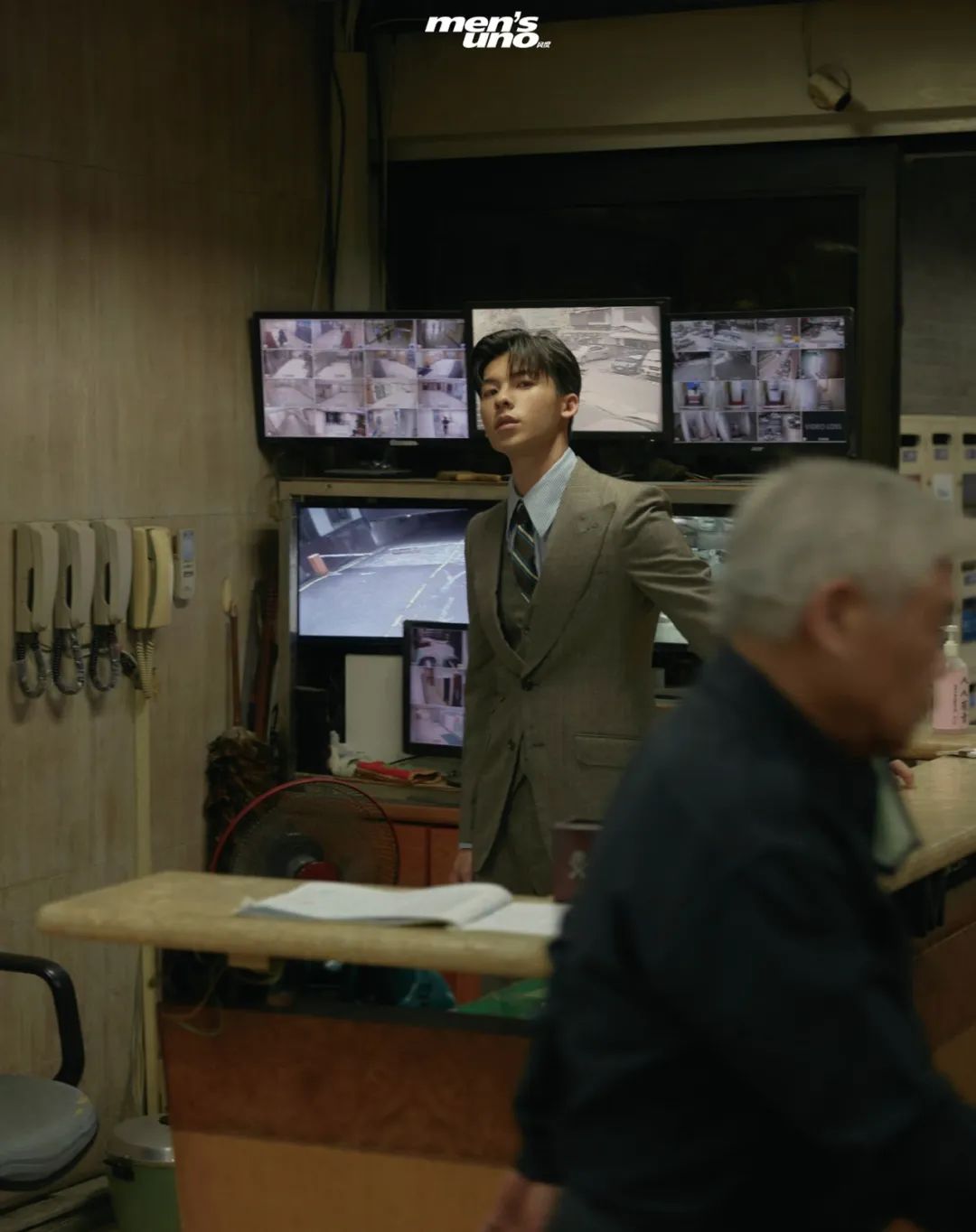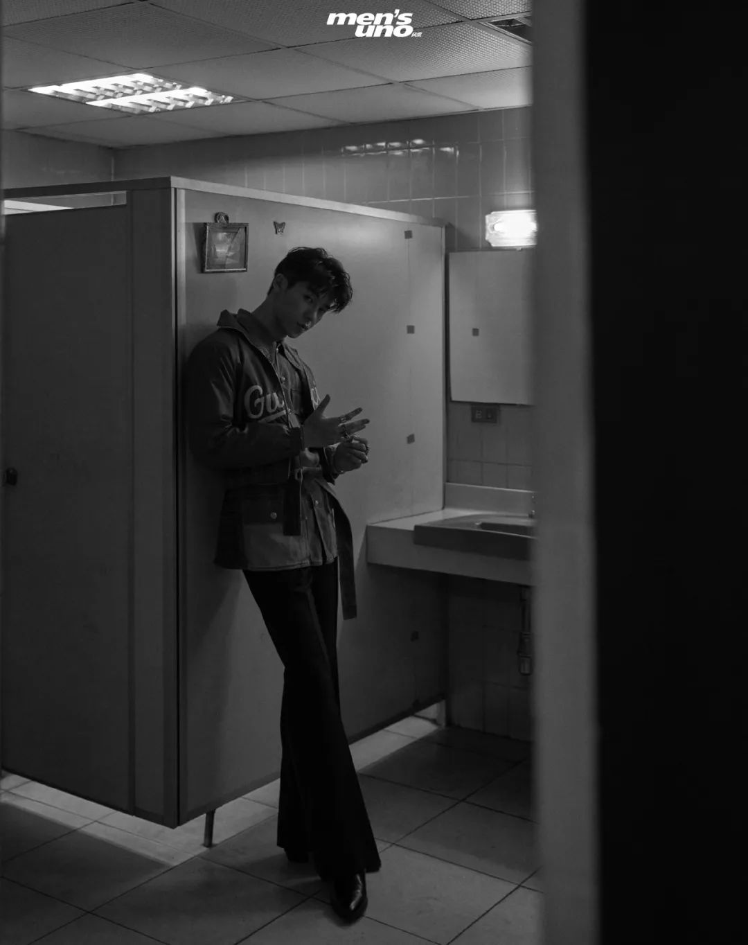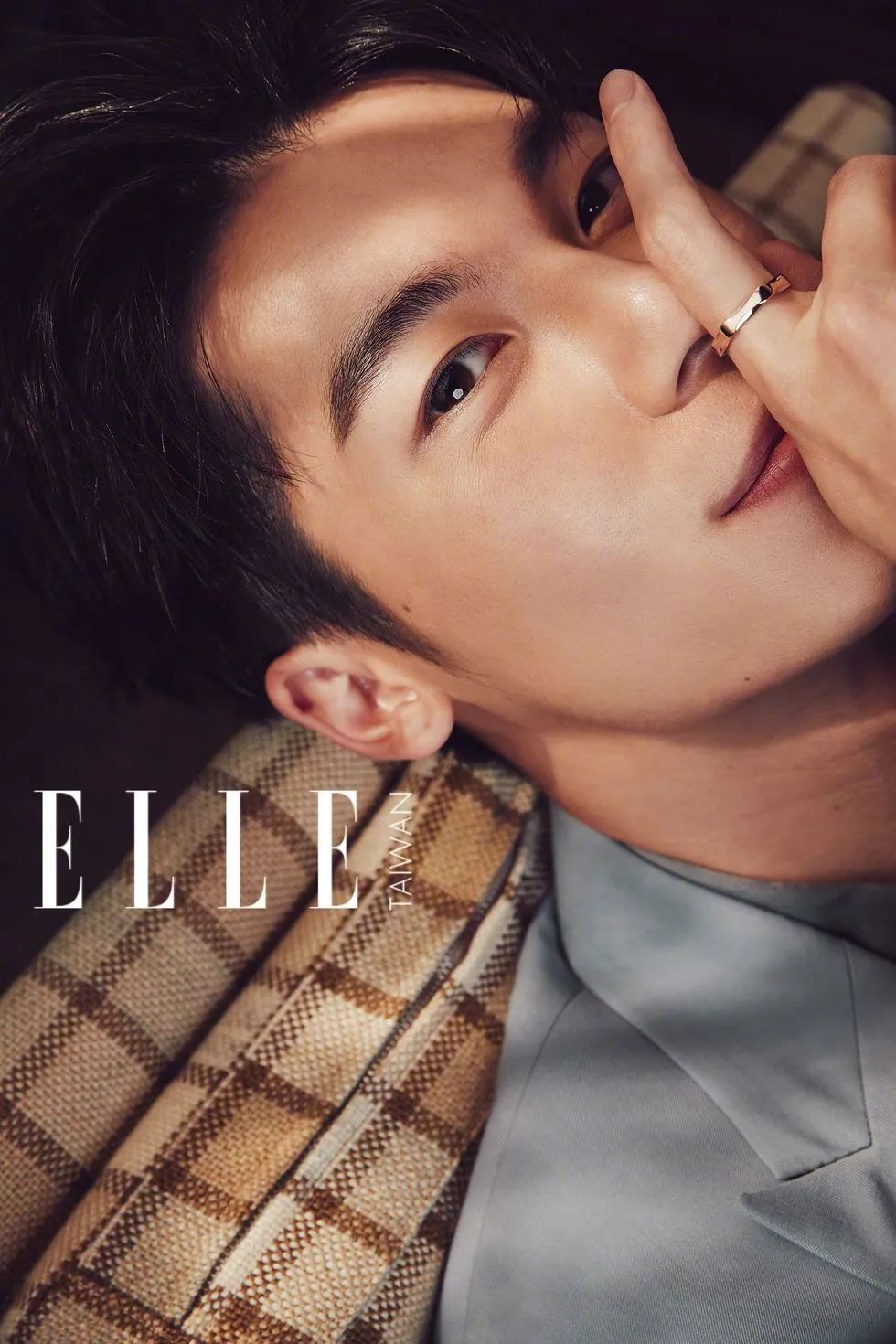 在《男人的尤诺》的硬照片中,他是一个古色古香的雅皮士。在台湾版的《Elle》中,他变成了一个热爱猫和家庭的阳光宅男。