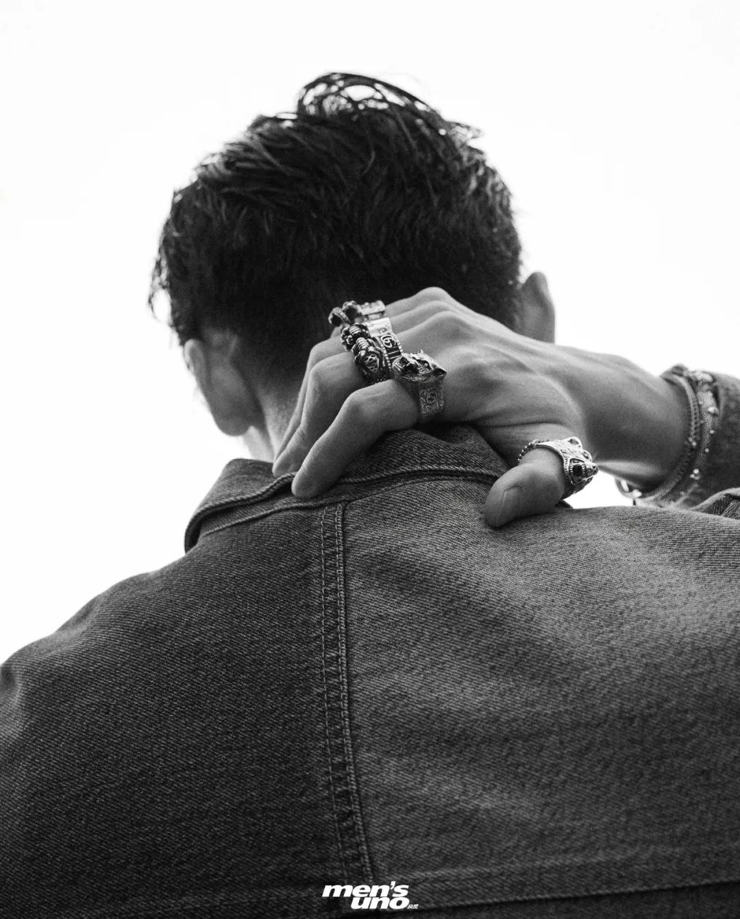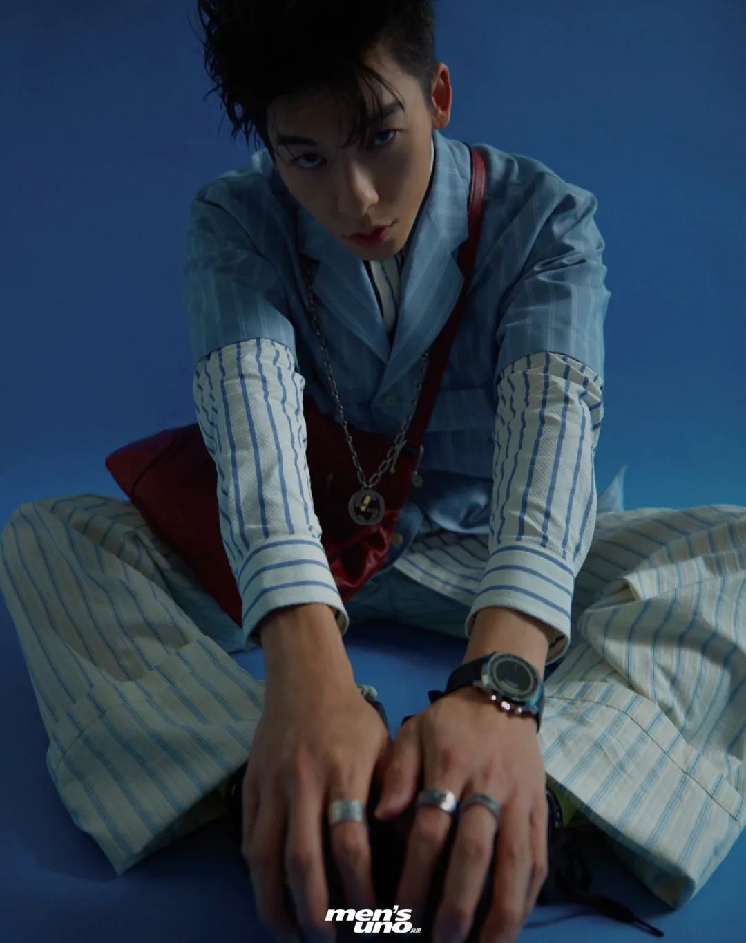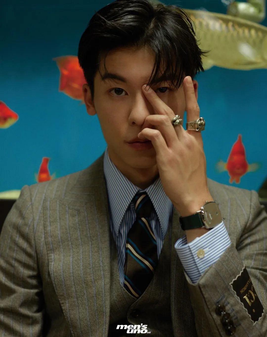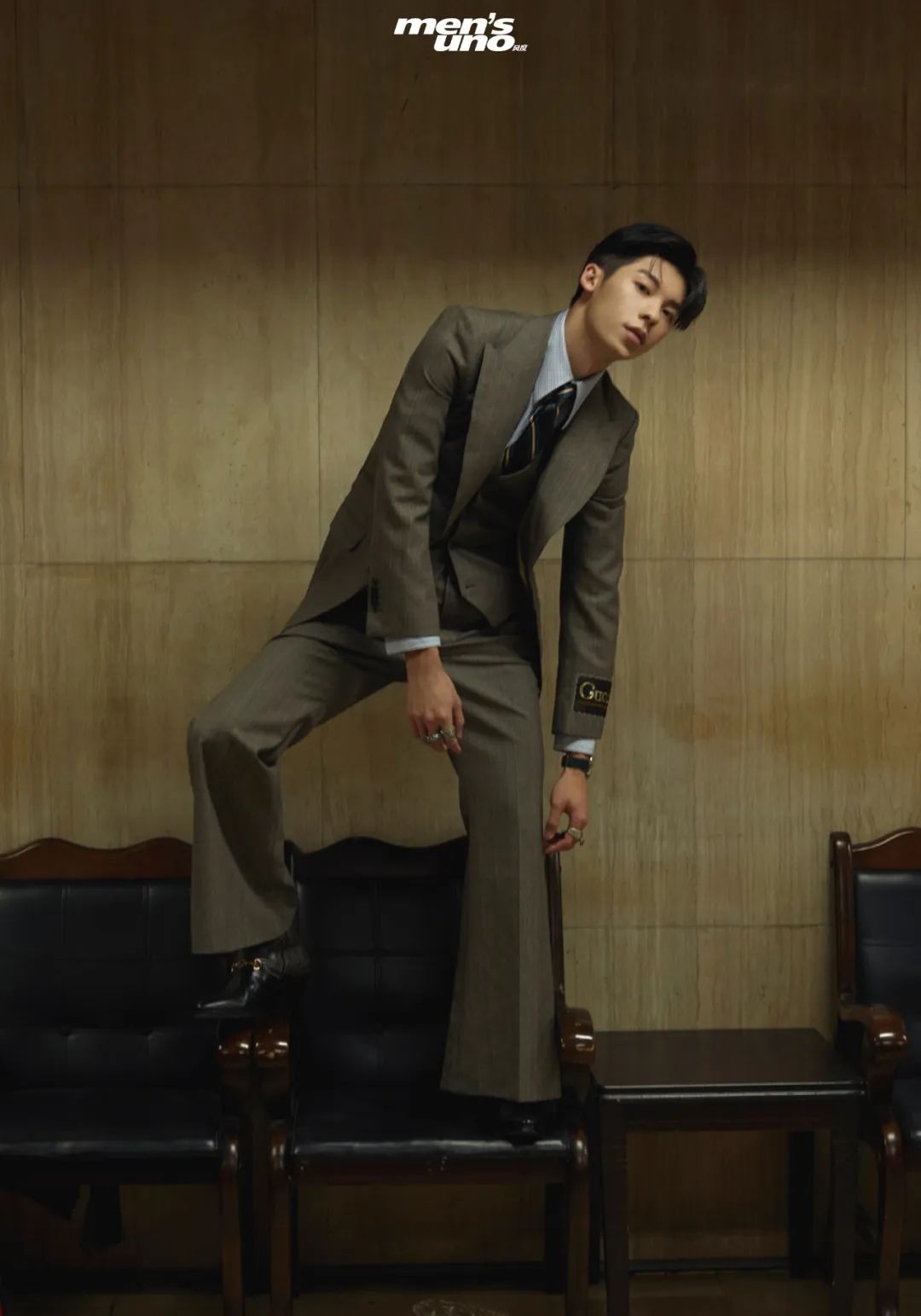 在《男人的尤诺》的硬照片中,他是一个古色古香的雅皮士。在台湾版的《Elle》中,他变成了一个热爱猫和家庭的阳光宅男。