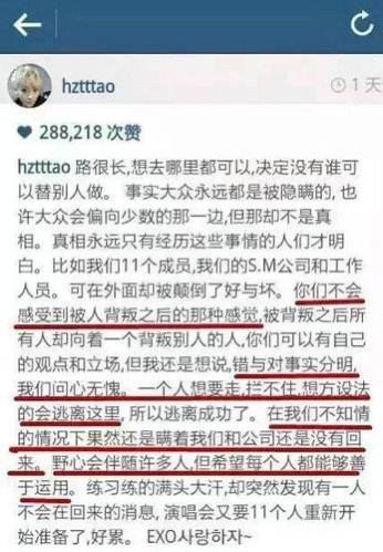 结果过了一年,黄子韬爸爸替儿子宣布与SM公司解约,黄子韬会回国发展。顿时哗声一片。