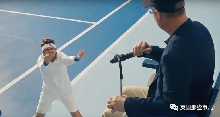 于是MV里有一幕画面,是“Tyler”在网球场上不开心,各种摔球拍、撒泼耍赖、大骂裁判,还向裁判比中指、扔网球,但裁判照单全收。