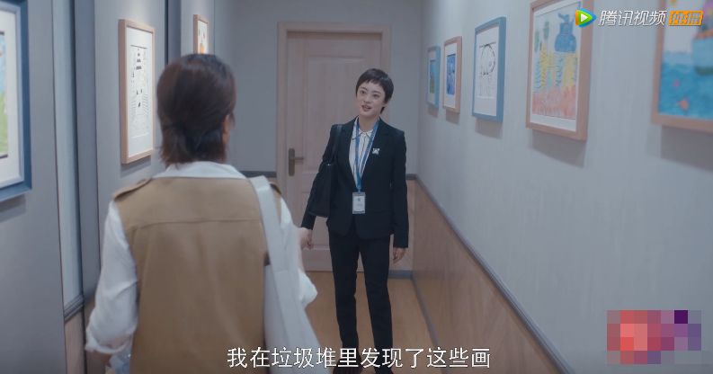 房似锦把从宫大夫家垃圾堆里捡来的宫大夫儿子画的画挂过道的墙上,