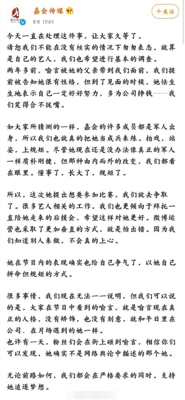 颜瑜工作室发表声明说,许多事情无法一一解释,间接敲定了颜瑜的不当言论,并说,我们看到的颜瑜已经长大,有规则。人们怀疑它不会退出竞争,继续追求自己的梦想。