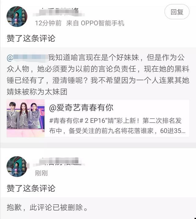 官方博客也删除了一些网友在“青春与你2”微博上的评论。网民的评论是真诚的,应该被解释为对年轻人的不良评论负责。诽谤这些评论没有极端的侮辱,也没有必要删除它们。