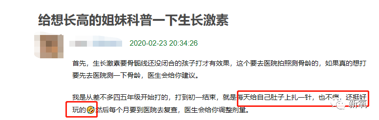 但是,在豆瓣有楼主表示自己打过生长激素,并说,“就是每天给自己肚子扎一针,也不痛,还挺好玩的。”