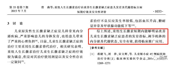 和特发性矮小症的安全性问题》中国医学科学院学报 潘慧