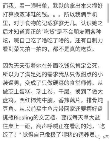 而且说到和吃货女友的恋爱,他用“广厦千间,夜眠只需六尺。家财万贯,日食不过三餐”来表达他对幸福的理解。