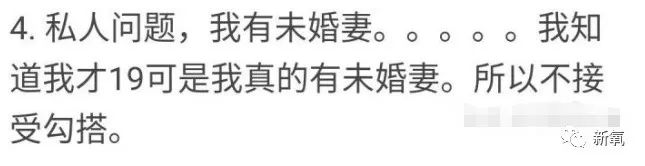 比如被问到私人问题时,在19岁这个躁动的年纪,他竟然直接说自己有未婚妻,拒绝勾搭。
