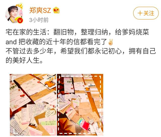日前,她还在个人社交账号上晒出了她收藏的粉丝近十年的信,一沓沓的信纸铺满了地面,看得出来被收藏的很好。郑爽还表示自己已经全部看完了信件的内容,真真是宠粉宠出了新高度。