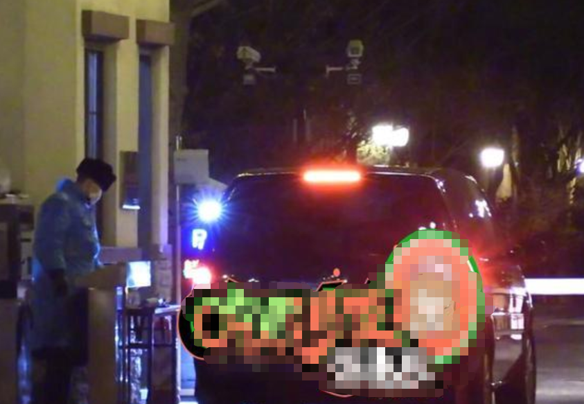 随后车上的一位男士下车拨了个电话,后给保安接听,保安听后便将车辆放行,一车人并未签署保安拿出来的文件及测量体温,车辆随即离开。
