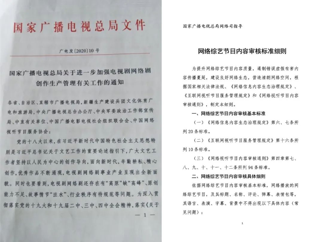 这一次,国家广播电视总局发布《关于进一步加强电视剧网络剧创作生产管理有关工作的通知》,“立项就需基本完成剧本”、“规范集数”正式落地,并对演员片酬审查再次加强。与此同时,网络视听协会也发布了《网络综艺节目内容审核标准细则》,对行业提出94条明确标准。这两则涵盖影视与综艺的新规,自上而下影响着影视行业每个角落。
