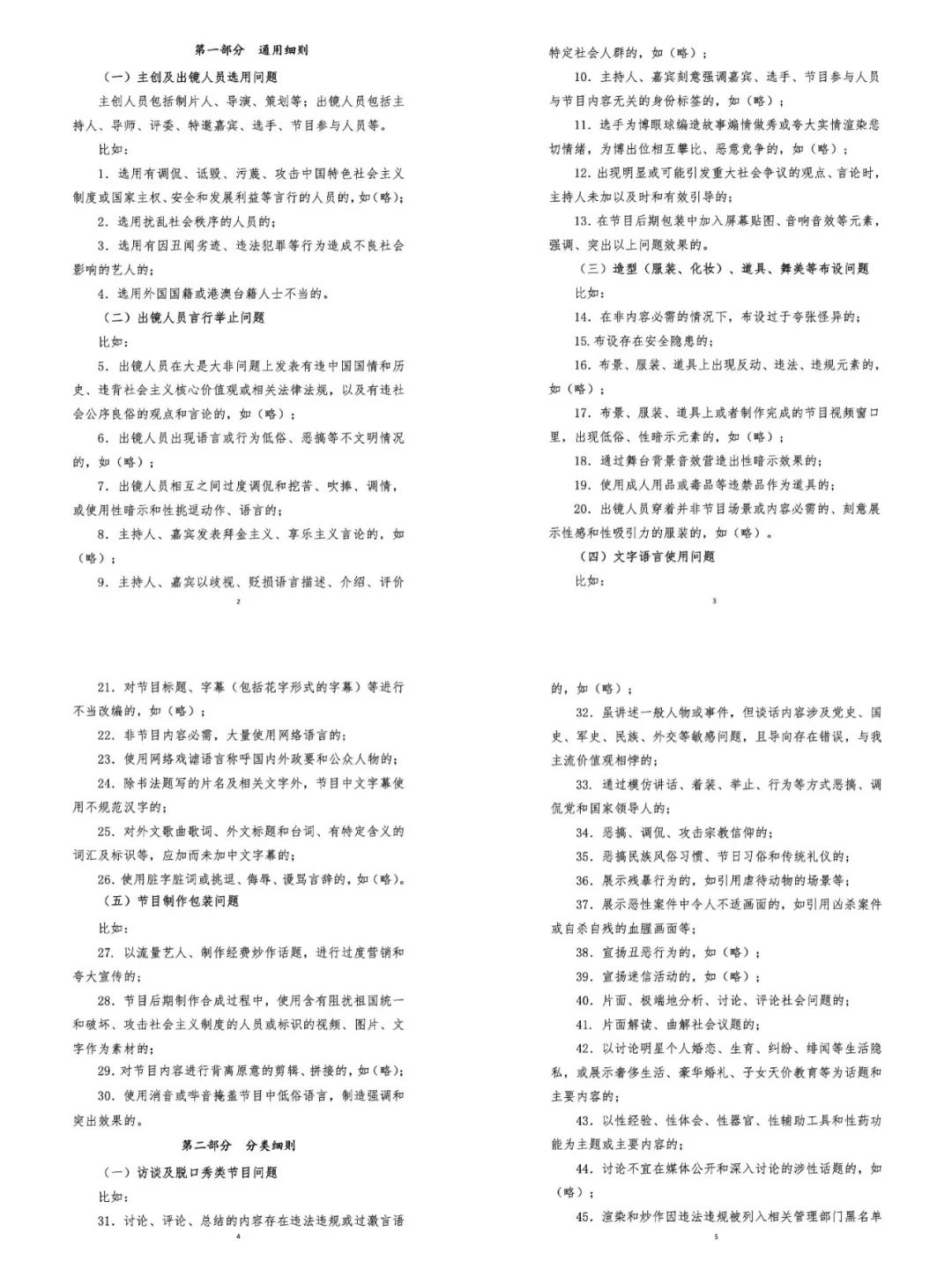 与以往条例、细则最大不同的是,这一次,从才艺表演、访谈脱口秀、真人秀到少儿亲子、文艺晚会等各类网综,从主创人员选用、出镜人员言行举止,到造型舞美布设、节目制作包装等不同维度,《细则》94条对创作者、参与者、用户观感每一环都有监管与关注。