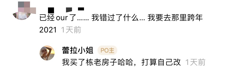 评论里有人问:“已经our....我错过了什么....”,蕾拉回复:“”我买了栋老房子,打算自己改”。改房子对许婧而说是件乐事,她对室内装修很感兴趣,曾学习室内软装课程,并和已经成为好友的设计师一起在上海创立过室内设计工作室。