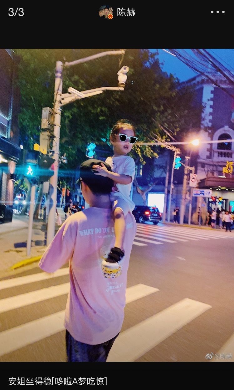 图案中陈赫抱着一个可爱的小女孩,难道张子萱已经生下了二胎女儿?