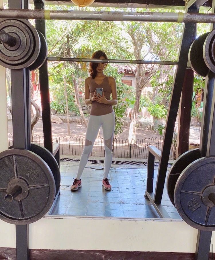 热爱健身的一对情侣,蕾拉本人身材也keep得很努力,马甲线十分显眼。