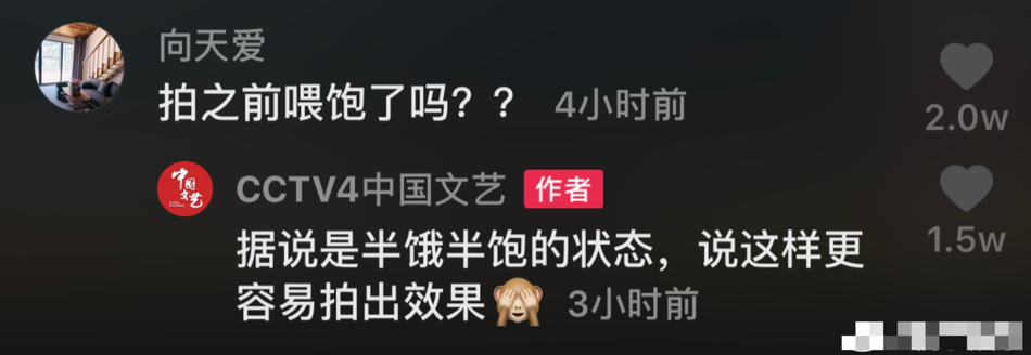 《水浒传》真老虎为拍摄效果,呈现半饱半饿状态。