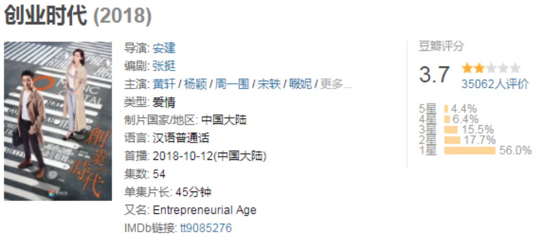 经不起推敲的细节,令《创业时代》成为国产职业剧的反面典型; 离职时的浮夸演讲,标志着周一围油腻路线的开始; 三角网恋的狗血剧情,让黄轩说出了那句可能会伴随他职业生涯终身的名台词。