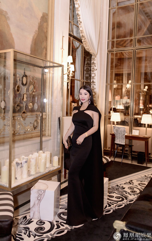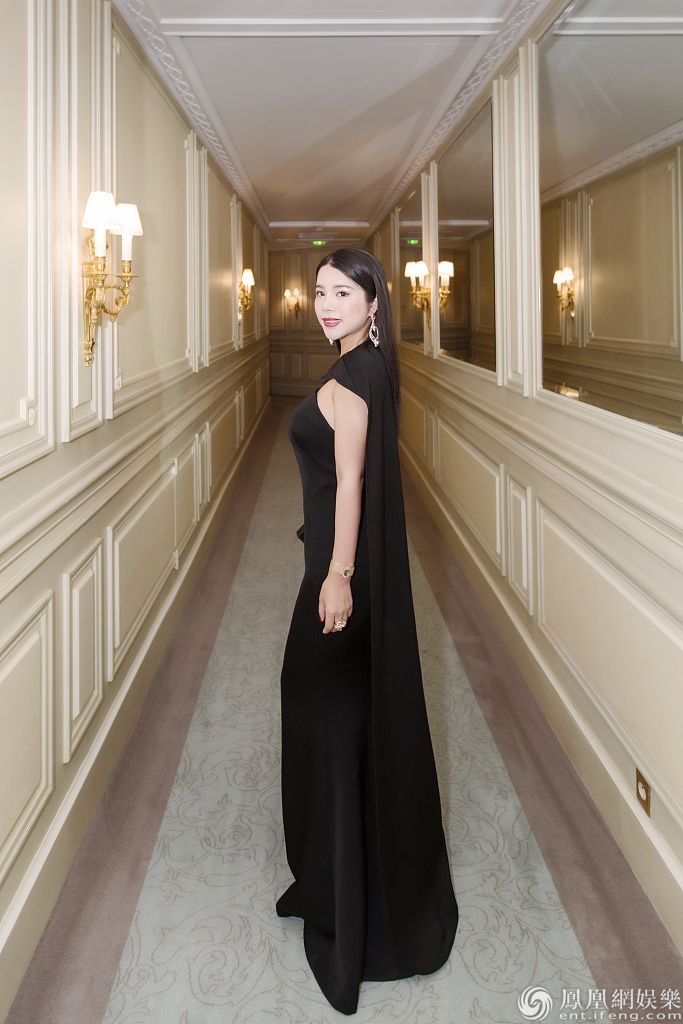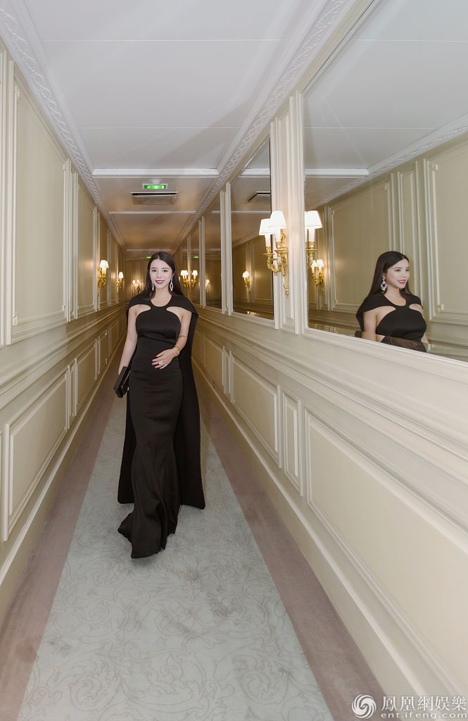 余晚晚身穿黑裙气质典雅高贵。