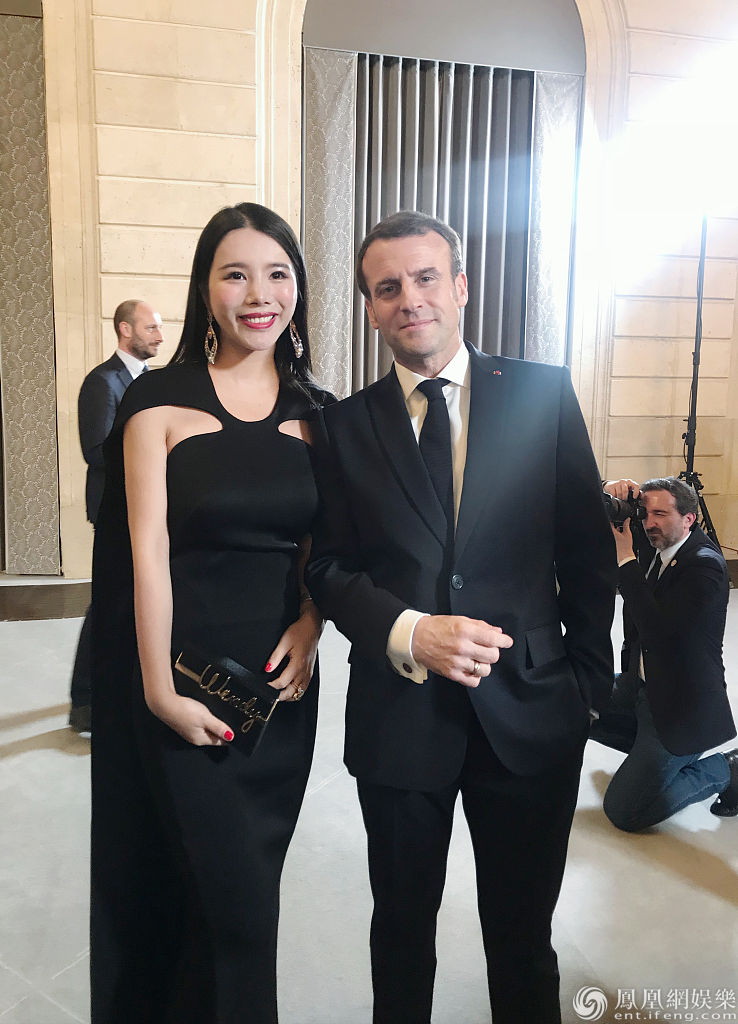 余晚晚和马克龙合影。
