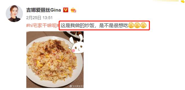 昨日,吉娜还晒出一张蛋炒饭的照片,并表示:“这是我做的蛋炒饭,是不是很想吃。”女神宅在家,原来开始研究美食了,果然是郎朗家贤惠能干的小娇妻。