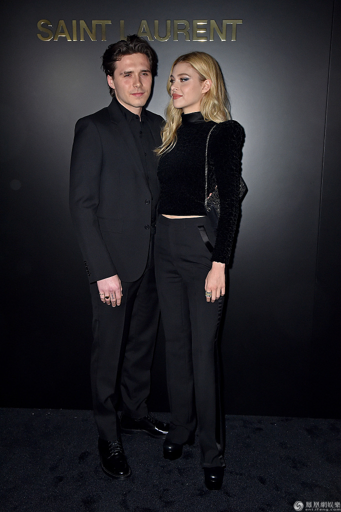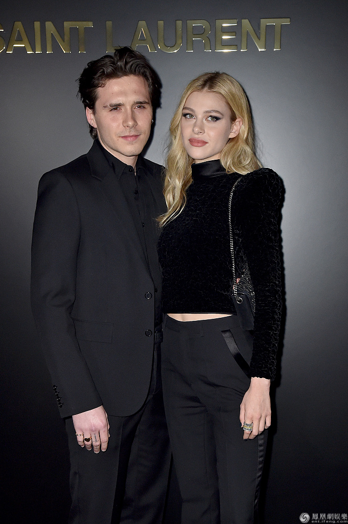 当地时间2020年2月25日,布鲁克林·贝克汉姆(Brooklyn Beckham)和女友妮可拉·佩尔茨(Nicola Peltz)恩爱亮相巴黎时装