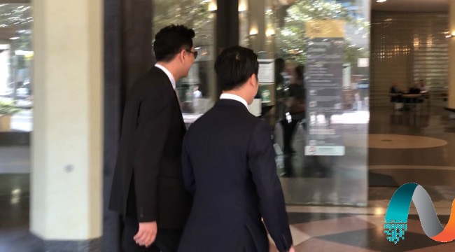 离开庭大概还有十分钟,王晶和自己的华裔律师也从法院侧门进入,王晶状态轻松,精神饱满。