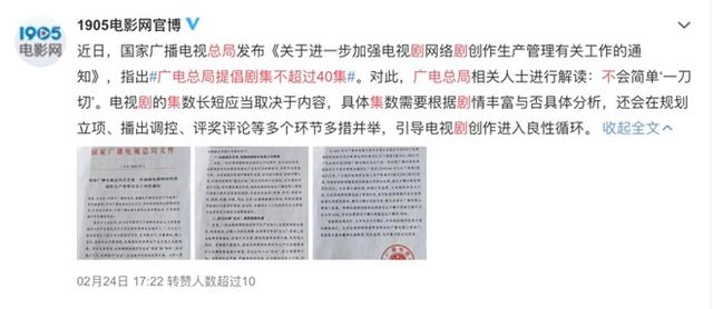 2019年9月6日,就曾有媒体报道针对目前国产剧 “注水”现象,国家广播电视总局拟规定电视剧不得超过40集。当时,多家影视公司的工作人员表示“新规正在调研中”。