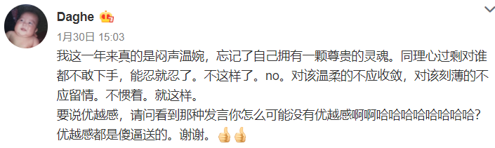 后来又碰到有人说他“优越感爆棚”,他甚至爆了粗口。