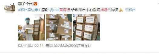 而且,黄海波的一些社交平台上,也都在宣传着跟疫情相关的内容,还在一些短视频网站上亲自录制视频感谢医生,呼吁大家安心待在家里。