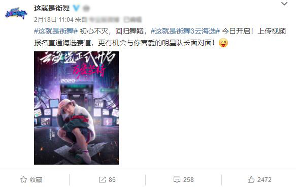 而2020年来到2月,《这!就是街舞》第三季也安排上了,上一季的冠军叶音成为这季的发起人,节目的云海选已经启动,而这个阶段将持续至4月。而除了招募选手外,相信不少观众跟我一样,颇为期待这一季的四位队长都会是谁?