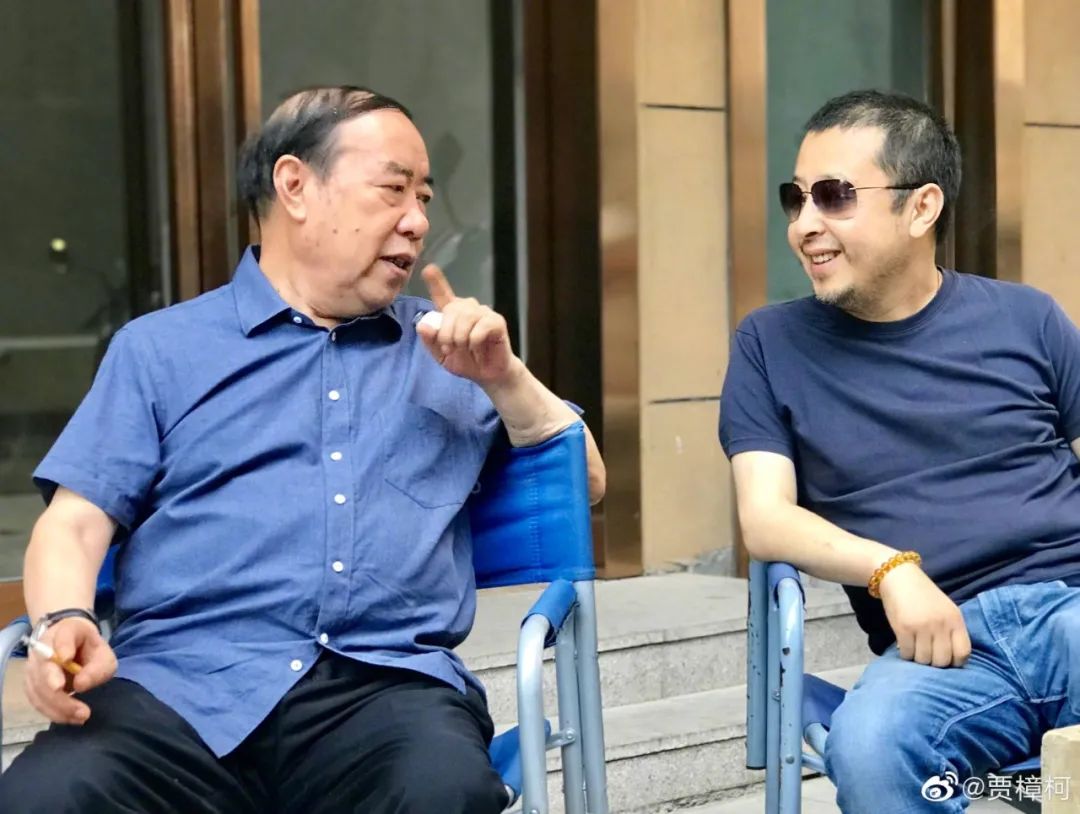 贾樟柯与作家贾平凹在《一直游到海水变蓝》拍摄现场