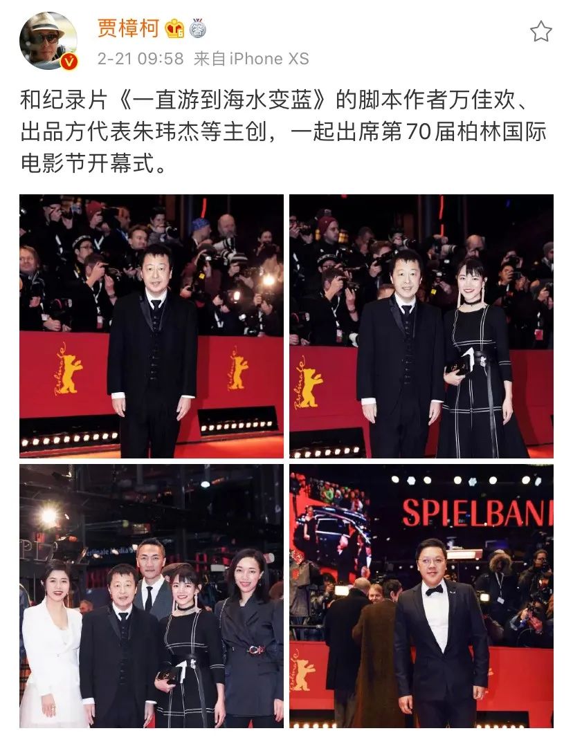 电影节第二天,贾樟柯的纪录片《一直游到海水变蓝》在波茨坦广场的柏林电影宫举行首映。