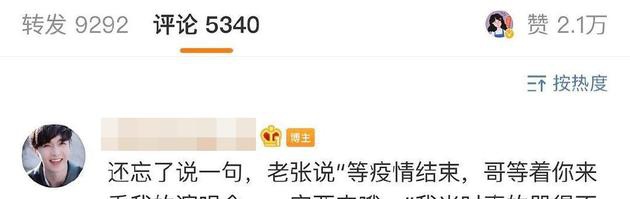 1905电影网讯2月24日,一名张艺兴的粉丝发博表示通过张艺兴工作室发布的“想在春天见到你”活动中,获得了和偶像张艺兴通话的机会。这名粉丝同时也是一名奋战在抗疫一线的医护人员。