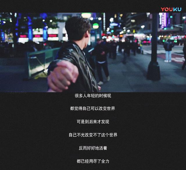 所以这个角色会说出这样的对白—— “很多人年轻的时候呢 都会觉得自己可以改变世界 可是到后来才发现 自己不光改变不了世界 反而好好活着 都已经用尽了全力。”也可以理解。