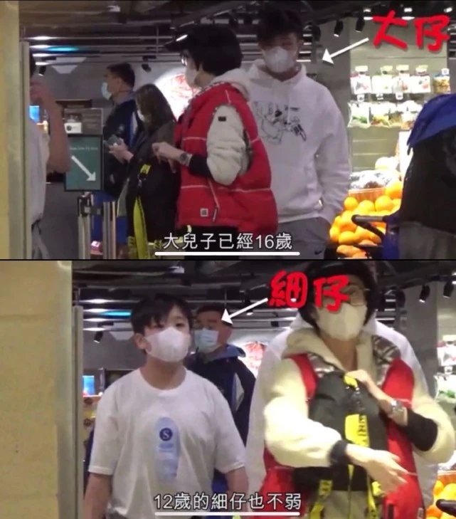 近日,45岁的孙佳君带着两个儿子现身超市购物。16岁的长子长得高大威猛,比妈妈高出半个头,12岁的小儿子只穿短袖,身体十分健壮。