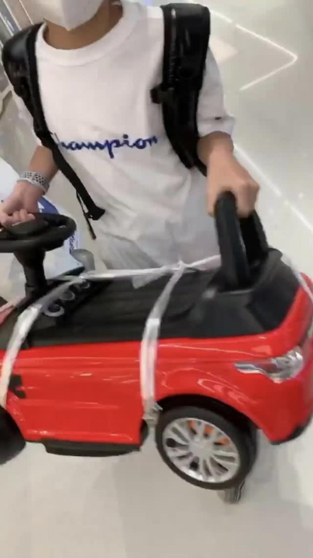 母子回家途中,还不忘消毒鞋底,此外买了这么多玩具不知道是不是也给三儿子Marcus买了呢?估计这么些玩具够三兄弟在家解闷的了。