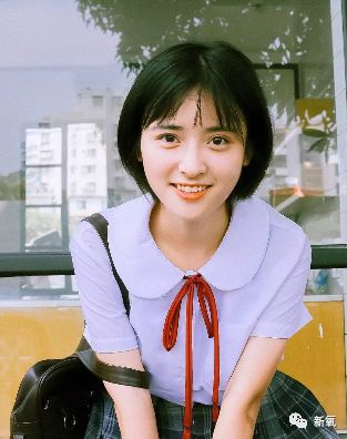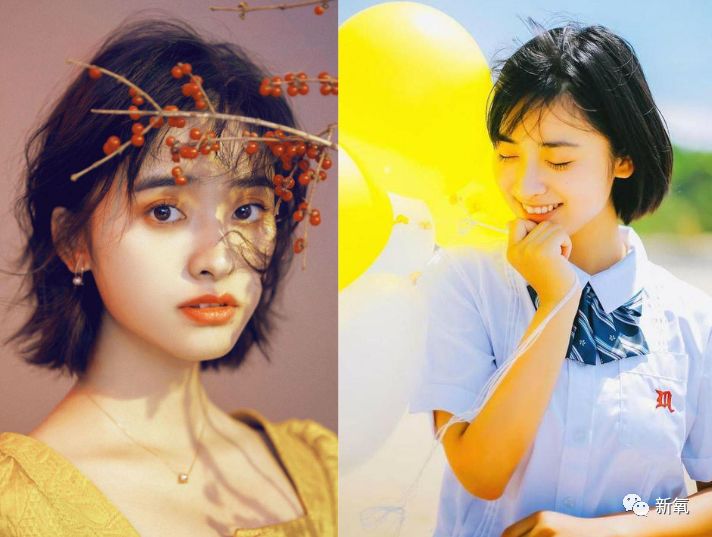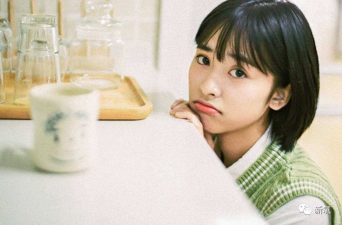 短发的沈月造型清新,滤镜日系,活脱脱的元气美少女。
