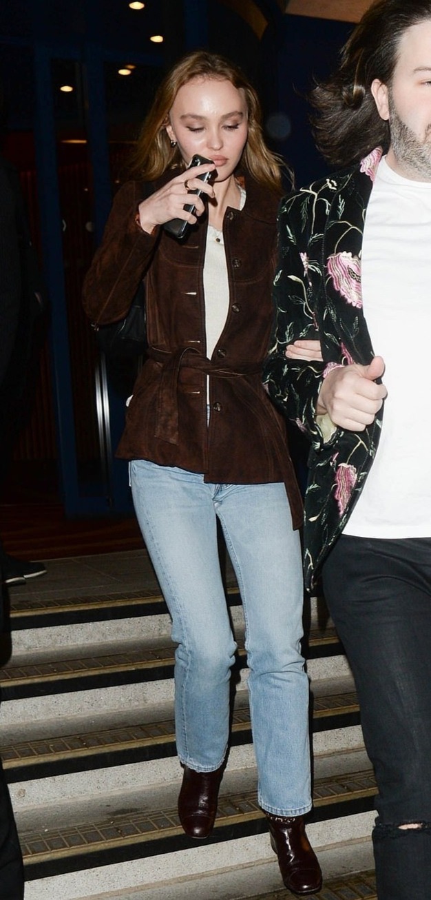 莉莉·罗斯·德普与朋友Michael一起牵手离开派对被拍。