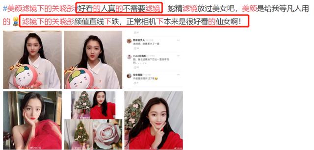 没想到“网红滤镜”一开,关晓彤的颜值是直线下降,果然长得好看的人不需要滤镜,美颜还是留给尔等凡人吧!