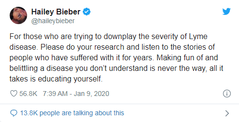 2019年,比伯被确诊患上莱姆病和艾巴氏。