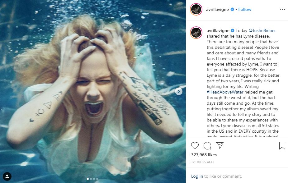 艾薇儿也曾因为患莱姆病卧床五个月无法动弹,而暂别歌坛长达5年。她曾描述当时自己的状态是“像死期将至,在暗无天日的悬崖边命悬一线”