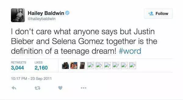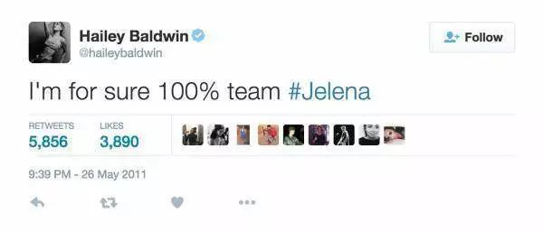 比较狗血的是,海莉在当时也是忠实的Jelena党(比伯和赛琳娜的cp粉)。