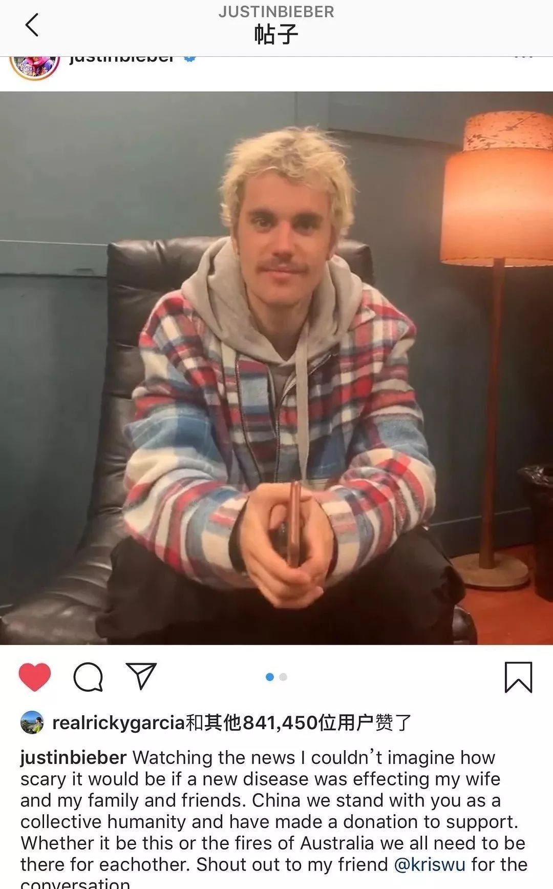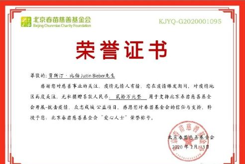 为了表示支持武汉早日战胜疫情,比伯主动推迟了新专辑的预售,却默默做慈善,20万捐款已经得到春苗基金会的到账认证。